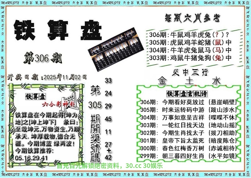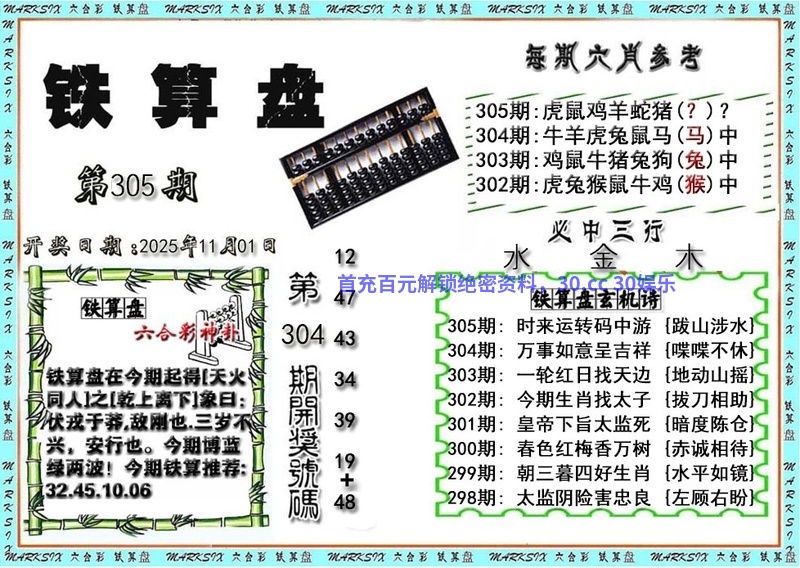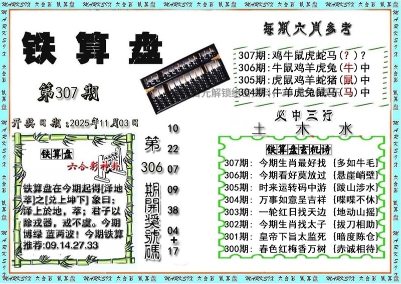 | 308期精解铁算盘玄机:资料更新中 玄机解释:资料更新中 综合取肖:资料更新中 主取号码:$$.$$.$$.$$.$$.$$.$$.$$  |